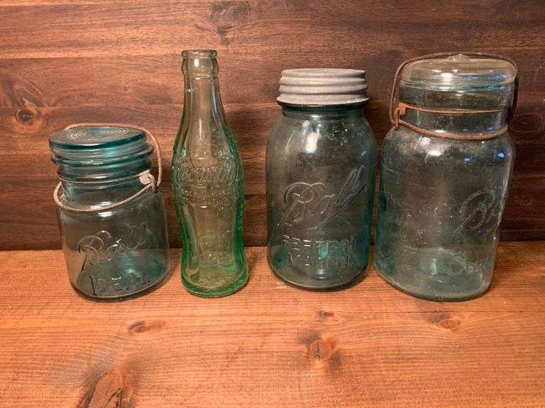 LOT 1368 - Vintage Blue Canning Jars & Easton MD Coke Bottle