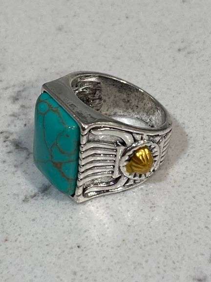 LOT 1250 - Tibetan Silver Turquoise Gemstone Ring
