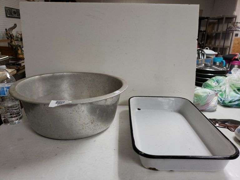LOT 684 - Farmhouse Pan And Metal Bowl