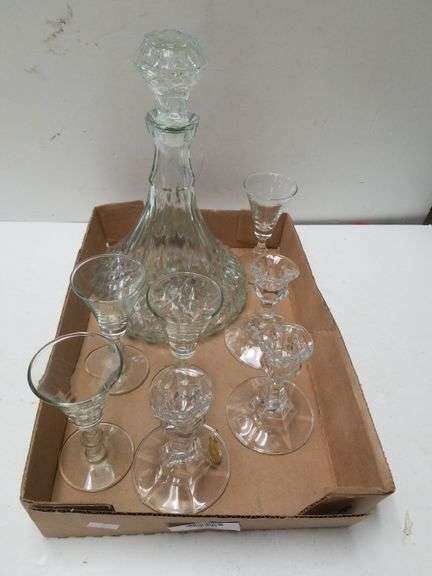 LOT 326 - Clear Libbey Candle Stick, Sherry Glass, Decanter