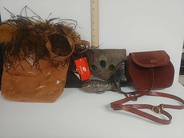 LOT 31A - Purses- Diophy, Peacock Clutch, Silver Like Metal Fish & Etienne Aigner