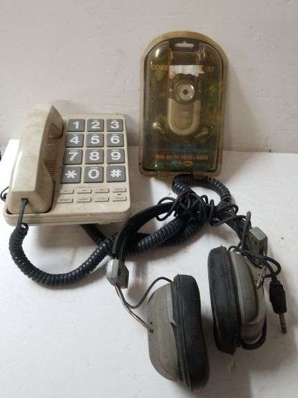 LOT 745 - Mini Pocket Radio, Push Button Phone, Realistic Headphones