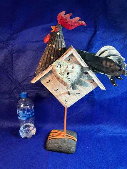 LOT 1345 - Metal & Wood Rooster Birdhouse