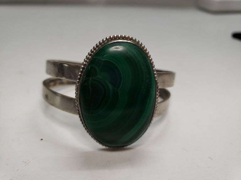 LOT 1327 - Ladies Sterling Silver W/large Malachite Stone