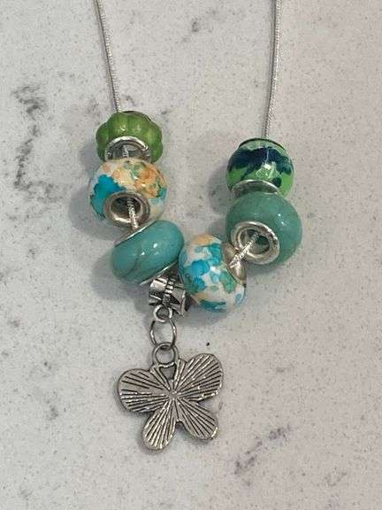 LOT 999 - Pandora Style Murano Glass Bead Necklace w/Butterfly