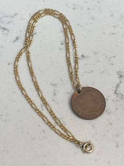 LOT 993 - Vintage Gold Tone Necklace w/Coin Pendant Depicting The Queen