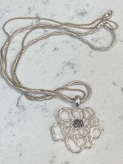 LOT 988 - Vintage Multi Strand Silvertone Necklace w/Floral Pendant