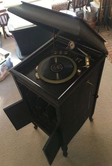LOT 5728 - Antique Columbia Grafonola Type E-2 Victrola in Vintage Speaker Cabinet Turntable works, but needle arm (which comes with it) is broken off. 4 Feet Tall.