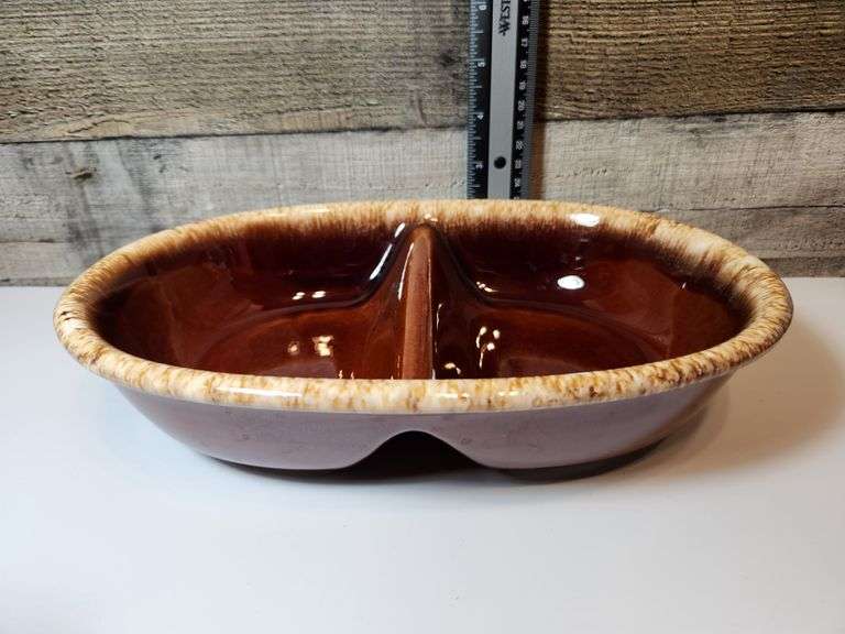 LOT 1309 - Vintage Hull Pottery divided dripware serving dish. Very good condition.