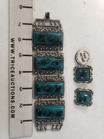 LOT 2043 - Large Teal Stone Bracelet W/matching Earrings