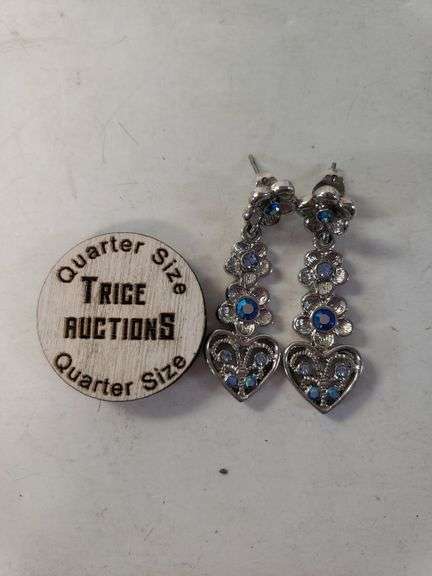 LOT 2037 - Silvertone Heart & Flower Stacked Dangle Earrings