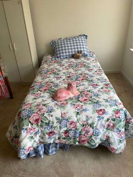 LOT 880 - Twin Bed with Mattress, Frame & Blankets