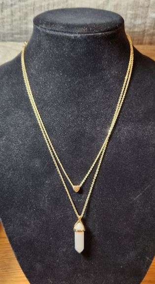 LOT 2107 - Quartz pendant, goldtone, double chain necklace