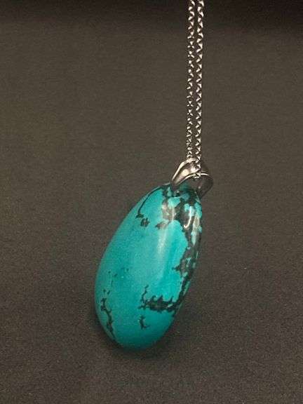 LOT 2259 - Rustic Turquoise Silvertone Pendant Necklace