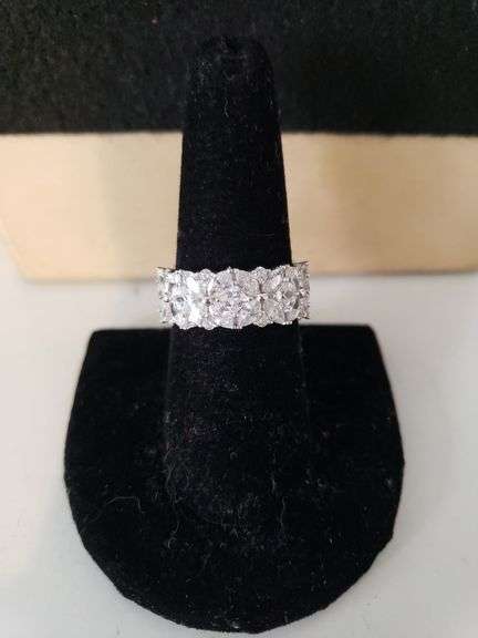 LOT 2180 - Large Sterling Silver Reflective Stone Wedding Band - Size 8