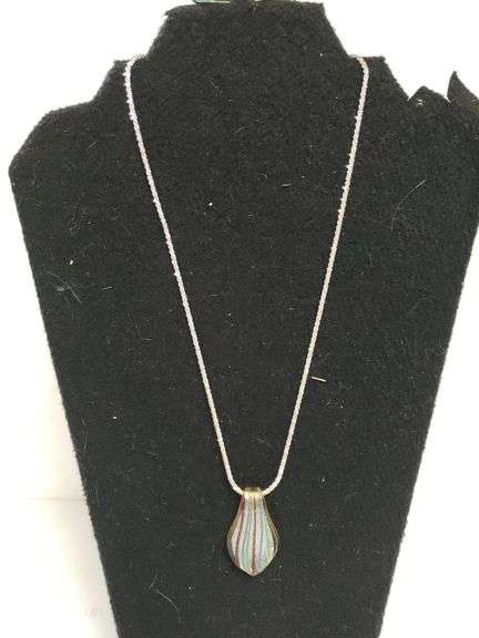 LOT 2071 - Sterling Silver Necklace W/Art Glass Pendant