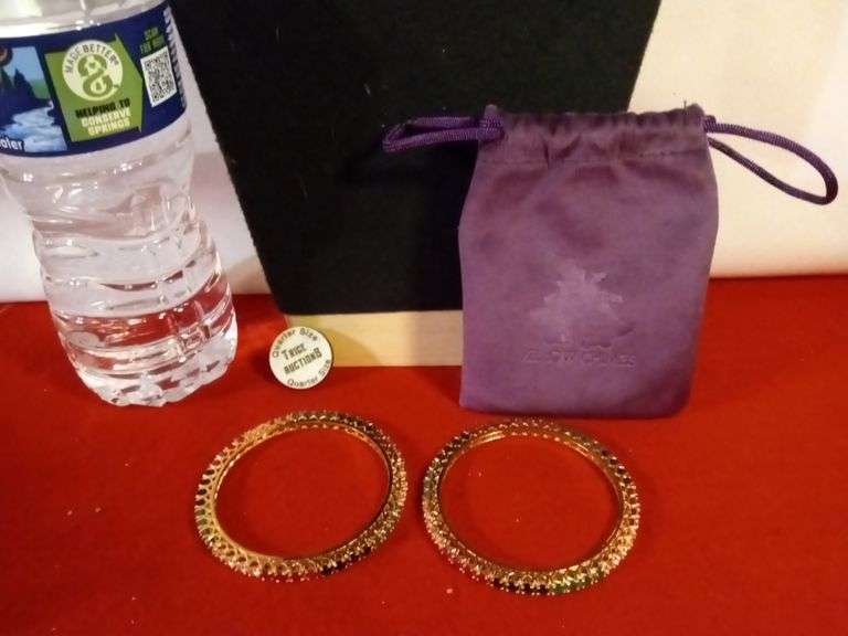 LOT 2115 - NEW Yellow Chimes Crystal Studded 2 Gold-Plated Bangle Bracelets with Velvet Bag