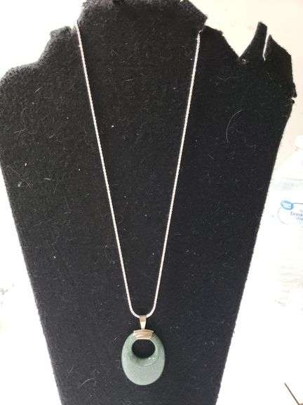 LOT 2083 - Sterling Silver Necklace & Pendant W/modernist Jade Chunk