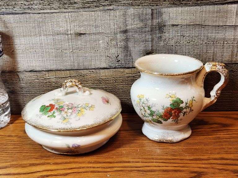 LOT 1192 - Vintage porcelain covered butter keeper and creamer.