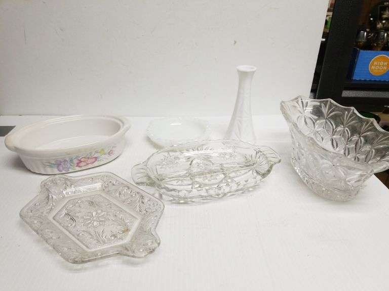 LOT 745 - Glass Pickle Dishes, Casserole Dish & Other