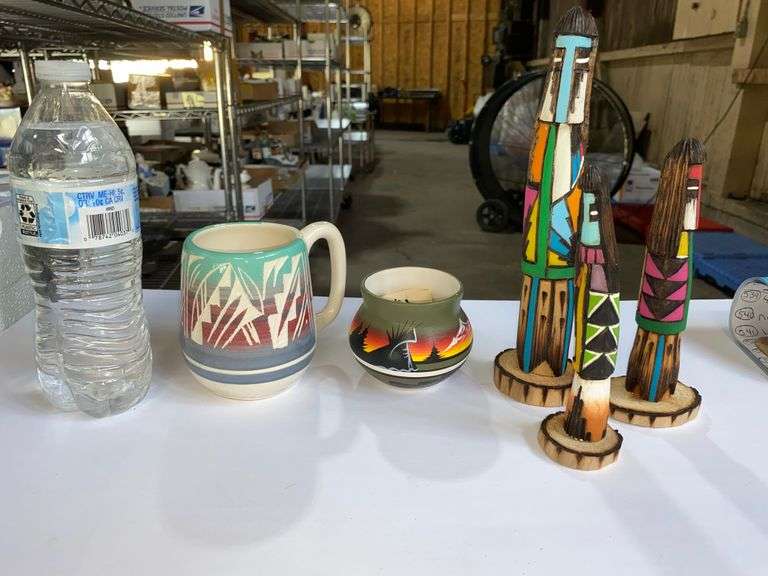 LOT 821 - Native American Pottery and Wood Figures