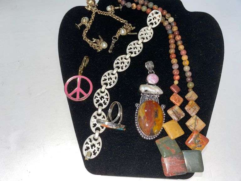 LOT 873 - Sterling Silver Necklace, 2 Bracelets, 2 Pendants and Ring