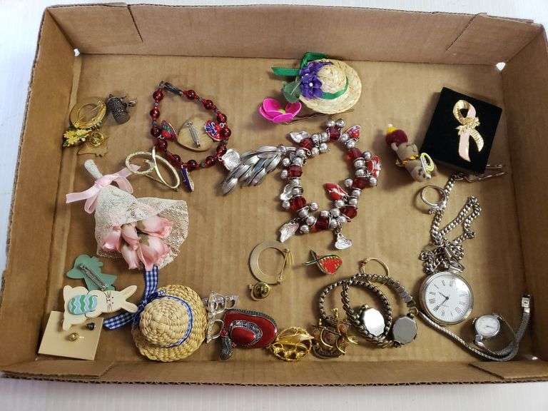 LOT 1053 - Lot Of Costume Jewelry Pins, Bracelets, Watches