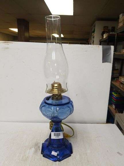 LOT 245 - Cobalt Blue Glass Kerosene Oil Lamp