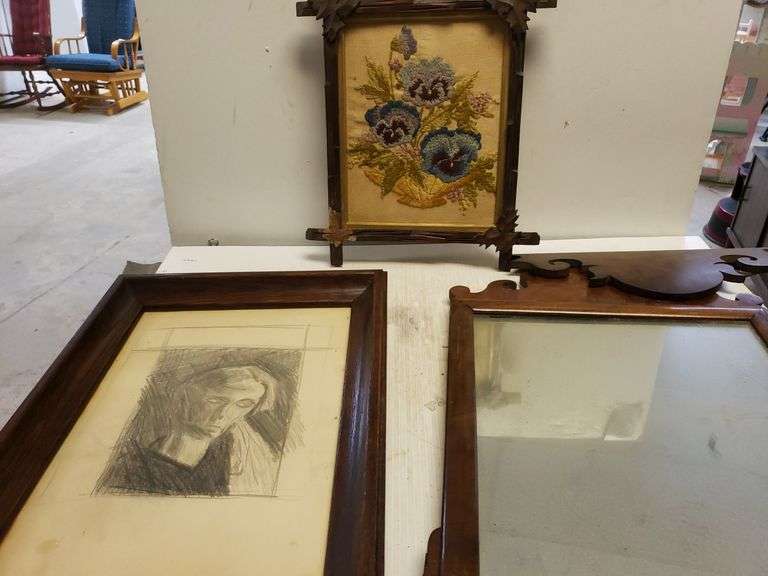 LOT 3073 - Wooden Frame Mirror, Portrait & Floral Pictures