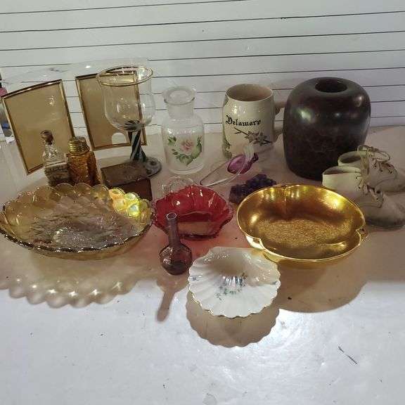 LOT 627 - Misc Items - Dishes, Baby Shoes, Picture Frame & More