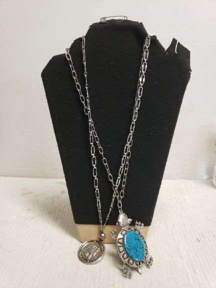 LOT 2258 - Mod MCM Large Turtle Necklace And Large Coin Necklace By Monet