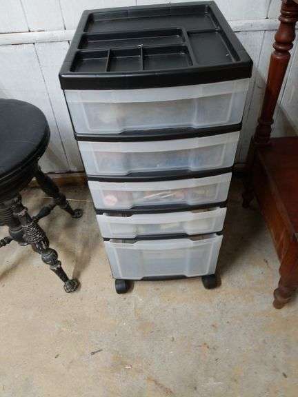 LOT 3003 - Mobile 5 Drawer Organizer With Contents. 26" Tall