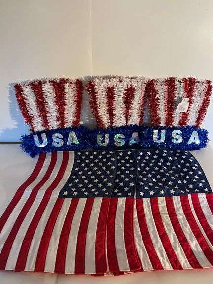 LOT 1041 - New! American Flag Placemats/ set of 4/ 3 tinsel patriotic USA hat decor