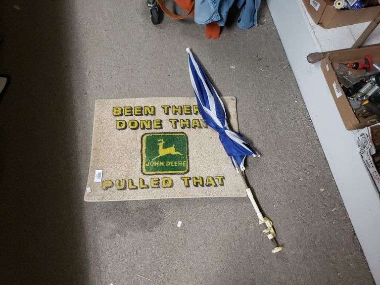 LOT 725 - John Deere Mat And Clip On Umbrella