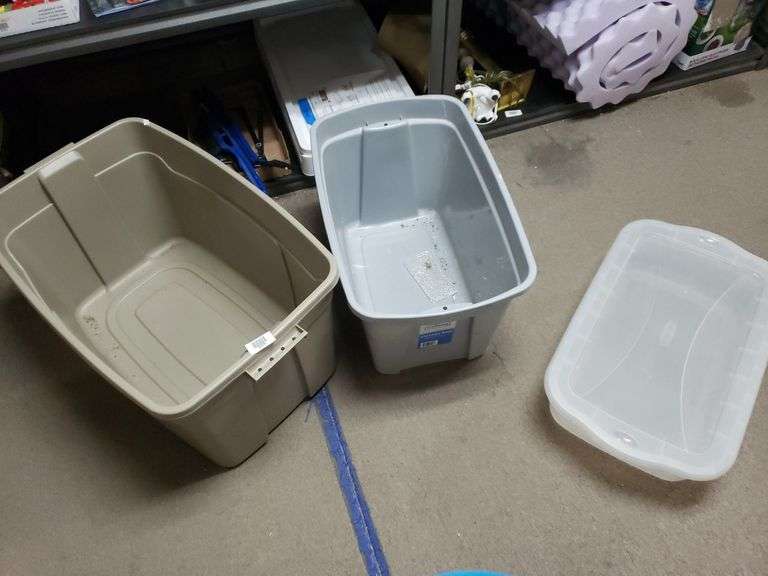 LOT 999 - (3) Storage Totes - 1 Cracked, 2 No Lids