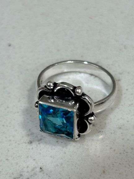 LOT 2095 - Blue Topaz Gemstone Sterling Ring