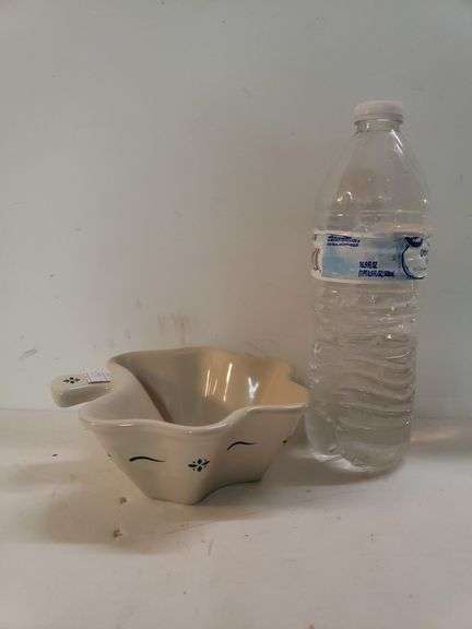 LOT 1072 - Longaberger Pottery Green Woven Traditions Shamrock Shaped Dish