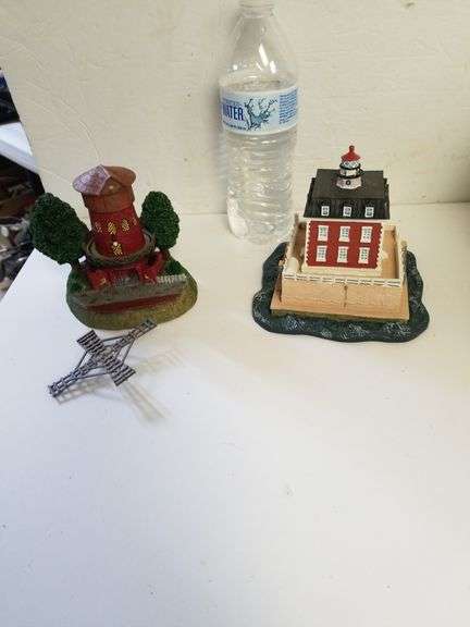 LOT 794 - Danbury Mint Moulin Rouge Windmill Needs Assembly And New London Ledge Lighthouse