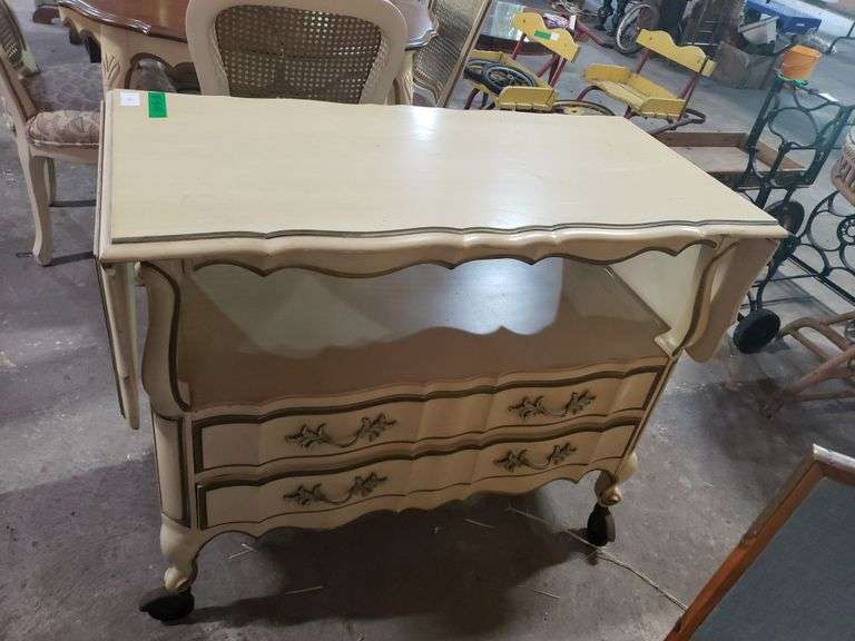 LOT 69 - Wooden Drop Leaf Serving Cart w/storage