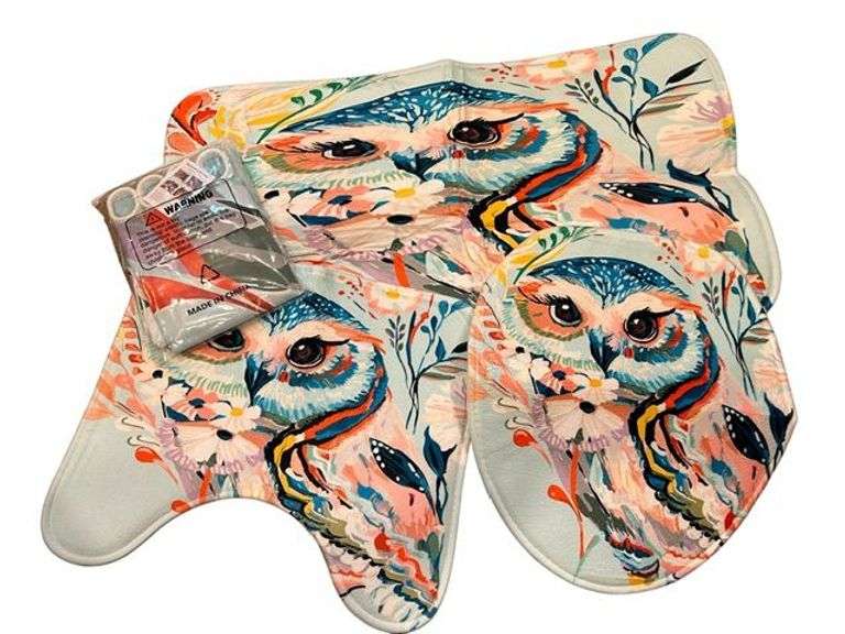 LOT 1019 - Bohemian Owl Bathroom Set w/Shower Curtain & Mats