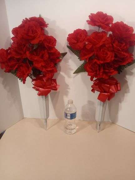 LOT 1049 - NEW 2 Memorial Flowers with Vases