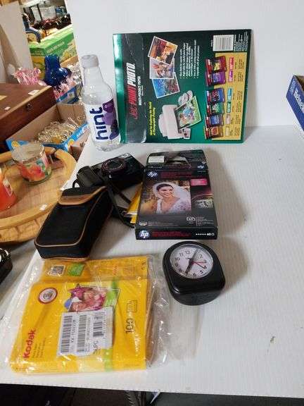 LOT 7 - Assorted printer Supplies, Canon Camera , Clock