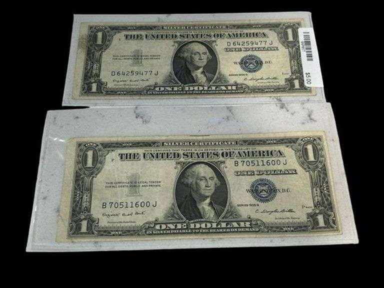 LOT 2111 - 1935 Early Date Pair of $1 Silver Certificates in Nice Condition