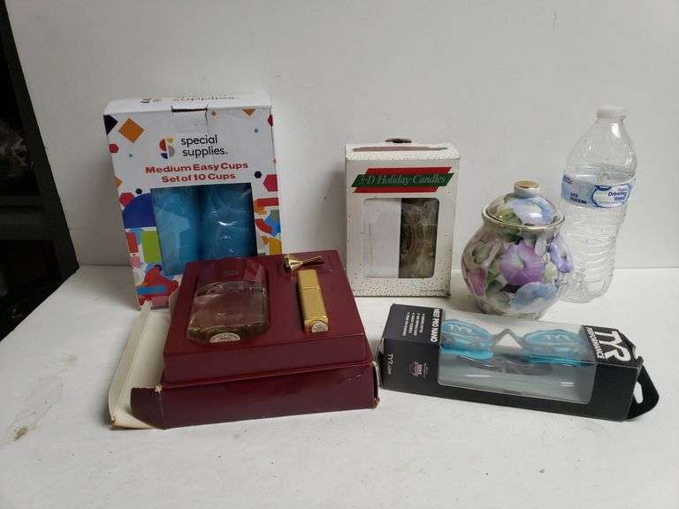 LOT 1170 - Candles, Cups, Perfume, Swim Goggles