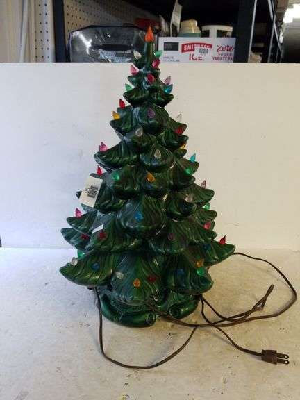 LOT 96 - Ceramic Green Christmas Light Up Tree (Some Bulbs Loose(