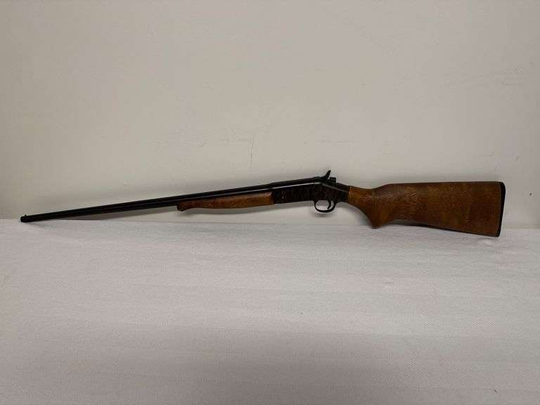 The New England Firearms Pardner Model SBI is a .410 gauge shotgun with a 3-inch chamber and full choke. Manufactured in Gardner, Massachusetts, USA, this single-barrel shotgun features a case-hardened receiver and smooth wood stock. It bears a US Patent No. 3988848 and serial number NE286792. Known for its durability and classic design, this model is ideal for collectors or enthusiasts seeking a reliable firearm. The gun shows minor signs of use but is in working condition, making it suitable for both display and practical use.