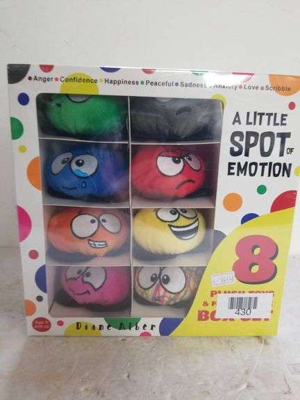A Little SPOT of Emotion Box Set includes eight plush toys, a book, a poster, and a mirror, designed to help children learn and recognize seven major emotions: Happiness, Confidence, Love, Anger, Sadness, Anxiety, and Peaceful. Created by Diane Alber, this educational set offers a tangible way for children to understand and discuss emotions, providing both comfort and practical learning experiences. The included book, "A Little SPOT of Feelings: Emotion Detective," guides children through the identification and expression of these feelings. Features also include a poster to help name daily emotions and a mirror to practice facial expressions. Suitable for ages 4 and up, this set is a comprehensive tool for emotional education.
