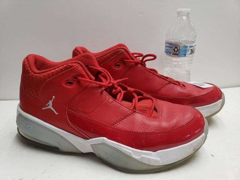 Air Jordan sneakers in vibrant red, featuring midsoles with visible Air units for enhanced cushioning. These shoes showcase a mix of synthetic and leather materials, providing durability and style. The signature white Jumpman logo is prominently displayed on the side, while the number 23 is embroidered on the tongue. The pair is in pre-owned condition, showing general wear on the soles. The size is US 10 with equivalent sizes: UK 9, EUR 44, CM 28, and BR 42. The model number is CZ4167-600. A great choice for collectors or enthusiasts looking for a reliable and fashionable footwear option.