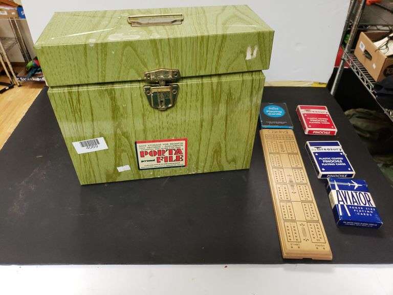 LOT 4069 - Safe Storage Box With Key And Playing Cards