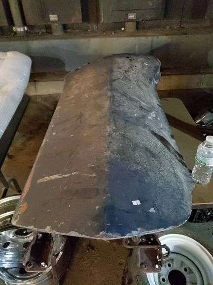Automotive door panel in blue color. Includes inner mechanical components and attachment brackets. Surface shows visible wear and oxidation. Intended for use in automotive repairs or restoration projects.